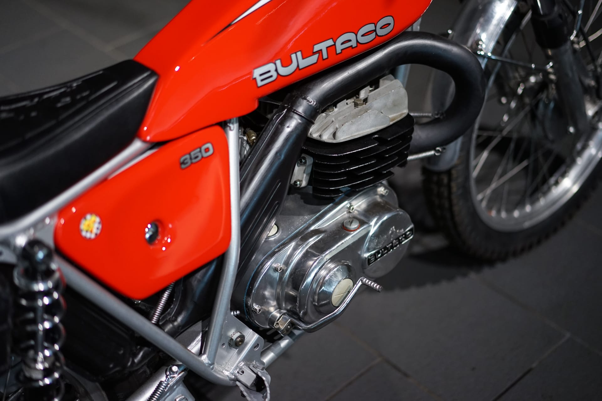 Elle est présentée avec des pièces « period-correct » sauf le carburateur qui a été remplacé par un carburateur Mikuni de bien meilleure facture que le Bing d’origine. Elle a ainsi gagné en puissance et en fiabilité sans pour autant dénaturer son état de collection.